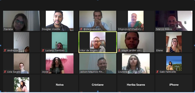 O professor Douglas Vicente Carmo Lima organizou uma reunião on-line, com o tema "Distanciamento social: saúde psicológica no contexto EscoLAR”.