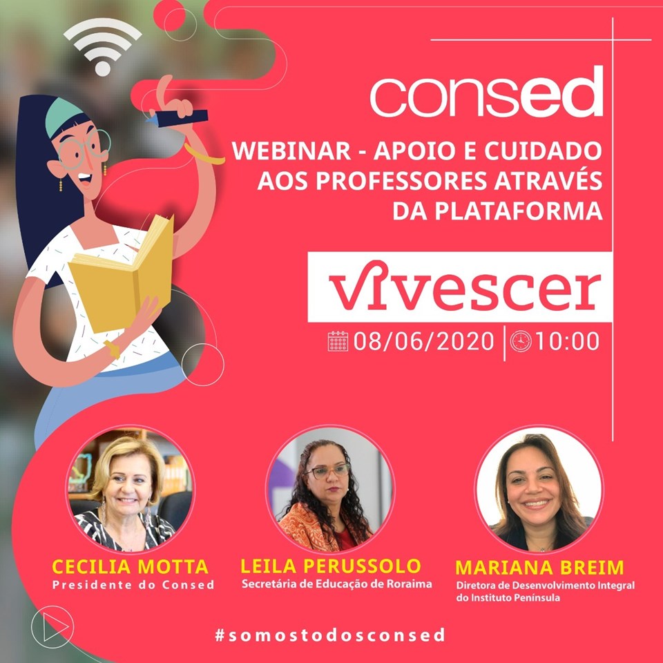 A Secretaria da Educação (Sedu), por meio do Centro de Formação dos profissionais da Educação do Espírito Santo (Cefope), convida a todos os profissionais da Rede Estadual a participarem da live "Webinar - apoio e cuidado aos professores através da plataforma Viverscer", que será realizada na próxima segunda-feira (08), às 10 horas, pelo link http://www.facebook.com/Vivescer.