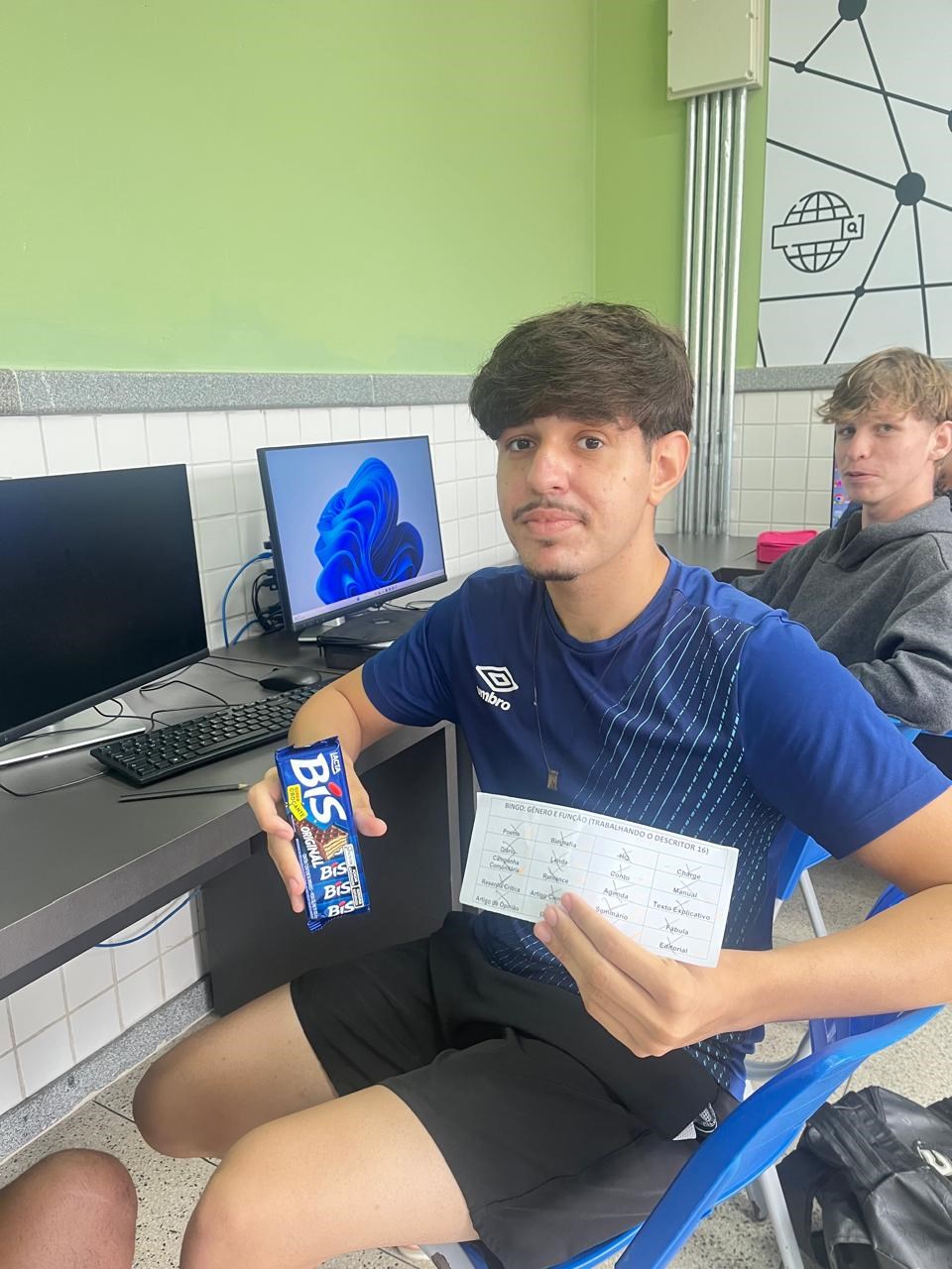 Após uma aula expositiva dialogada, os estudantes participaram de um bingo pedagógico com charadas que apresentavam características e finalidades de diferentes gêneros. A partir dessas pistas, os alunos identificavam os gêneros em suas cartelas, em uma dinâmica que estimulou o engajamento e a participação ativa, sendo finalizada com uma premiação simbólica.