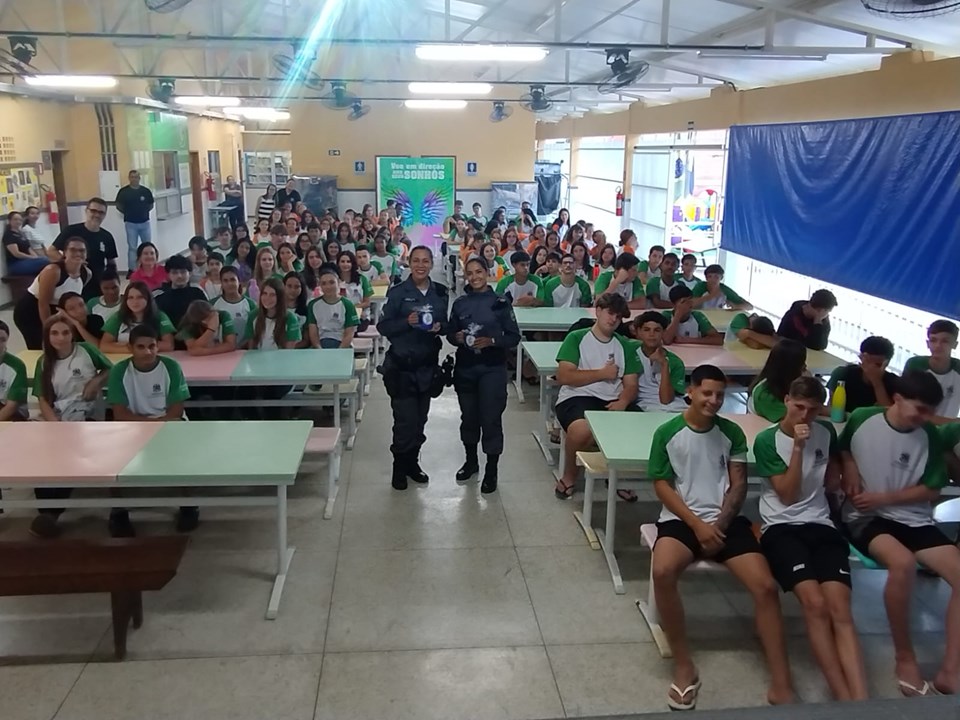 “A realização de palestras sobre violência doméstica nas escolas é fundamental, pois ajuda a sensibilizar os estudantes sobre esse grave problema social, promovendo a conscientização e o entendimento sobre o que constitui violência, seus efeitos e como prevenir ou buscar ajuda. Essas palestras podem quebrar o ciclo de silêncio e permitir que jovens reconheçam sinais de abuso, tanto em suas próprias famílias quanto no ambiente externo. Além disso, podem ajudar na formação de uma cultura de respeito, empatia e igualdade, promovendo um ambiente escolar mais seguro e saudável para todos”, afirmou a Cabo Paula, uma das palestrantes do dia.