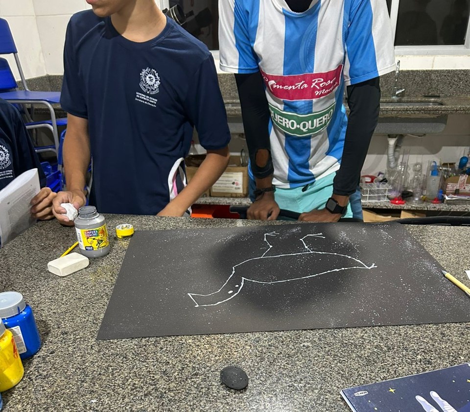 Os estudantes participaram inicialmente de momentos de contextualização com imagens, vídeos e rodas de conversa, seguidos de atividades práticas, como a construção de mapas celestes com base nas constelações indígenas e a comparação com os modelos da astronomia ocidental. Além disso, representaram em cartolina preta as principais constelações indígenas, simulando o céu noturno e consolidando o aprendizado de forma visual e lúdica.