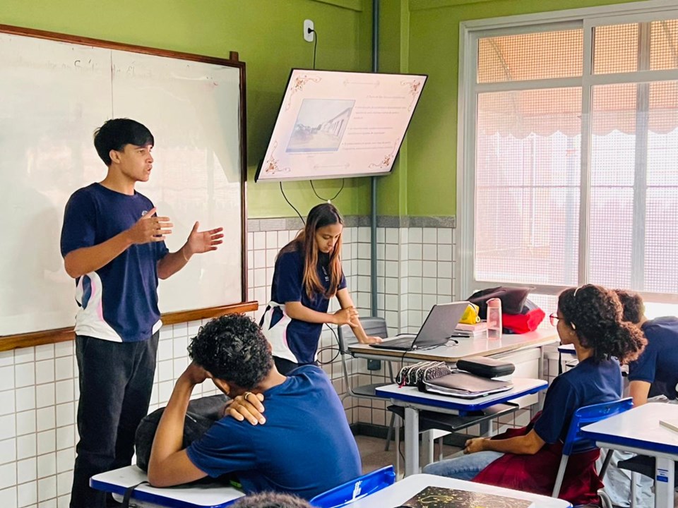 Durante a atividade, os estudantes investigaram diferentes paisagens de São Mateus, como o Porto, a Igreja Velha, a Capelinha de Guriri e a Ponte de Guriri, realizando comparações entre imagens do passado e do presente. A partir dessa análise, foram discutidas as transformações ocorridas nesses espaços, com destaque para intervenções relacionadas à urbanização e à infraestrutura.