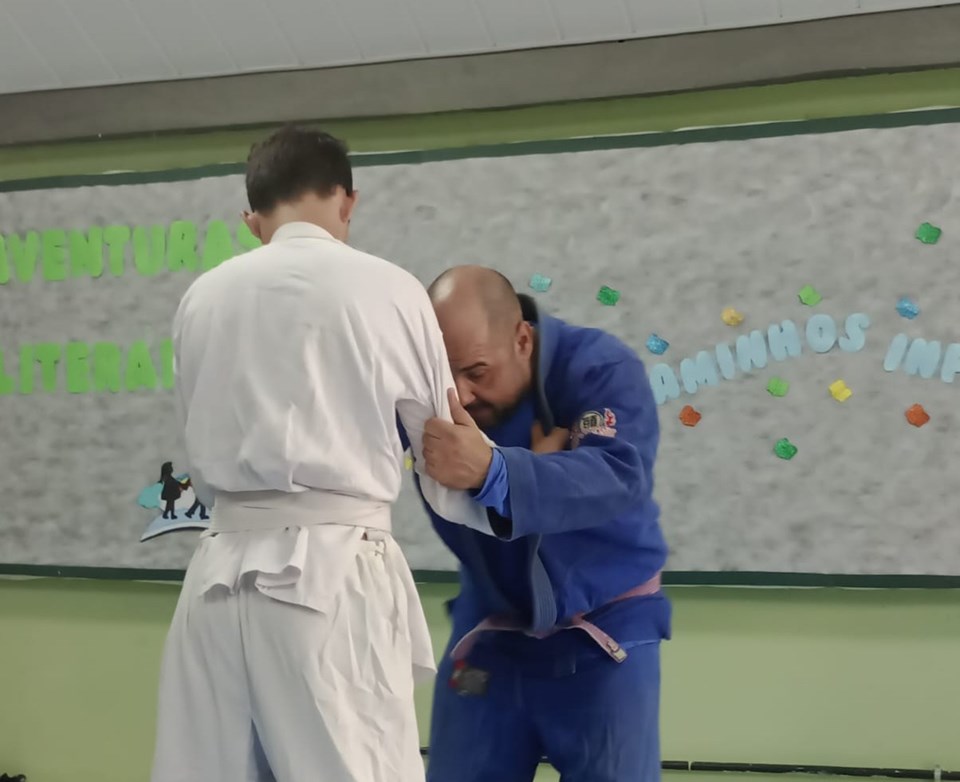 Durante as atividades, os alunos vivenciaram práticas corporais da arte marcial, com ênfase no autocontrole, na disciplina e na cooperação. Foram trabalhadas técnicas básicas de judô, adaptadas ao contexto escolar, incluindo quedas, rolamentos, projeções simples e outros fundamentos da modalidade.