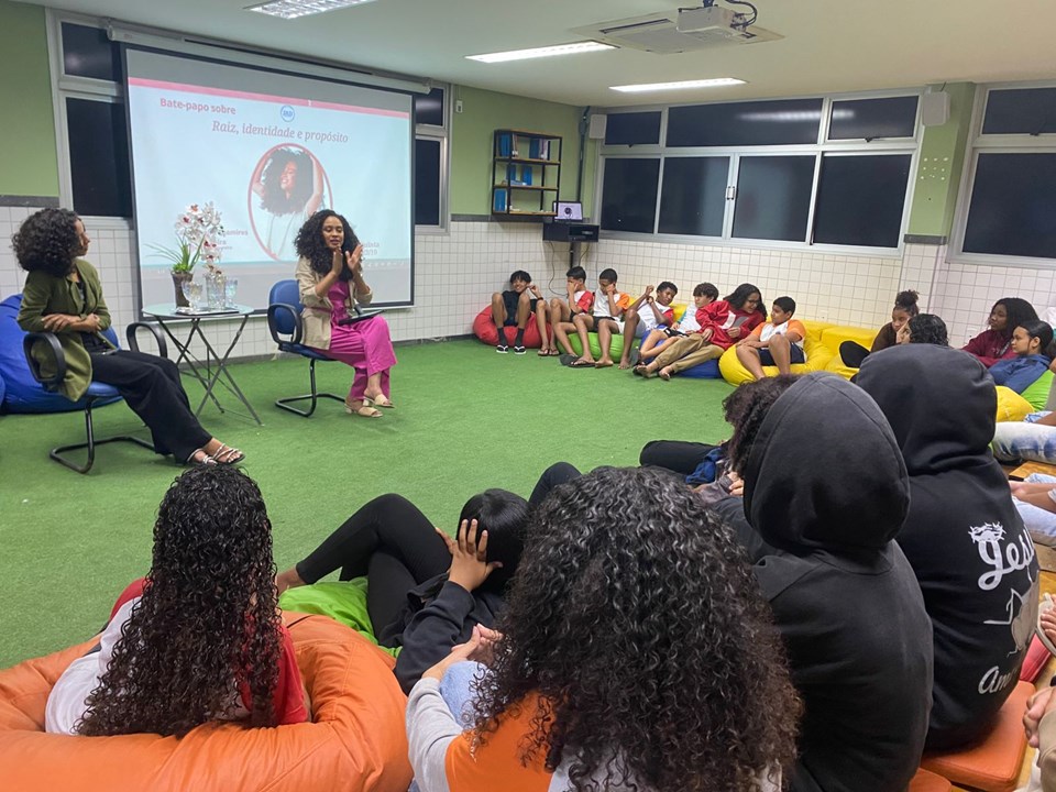 Durante o evento, os estudantes participaram de dois encontros especiais. No primeiro, as profissionais do Studio Thamires Moreira conversaram com as turmas sobre a importância dos cabelos crespos, cacheados e ondulados na construção da identidade e na valorização da ancestralidade. A palestra “Raiz, identidade e propósito” foi seguida de cortes e cuidados com os cabelos, em um momento de empoderamento e fortalecimento da autoestima das alunas.