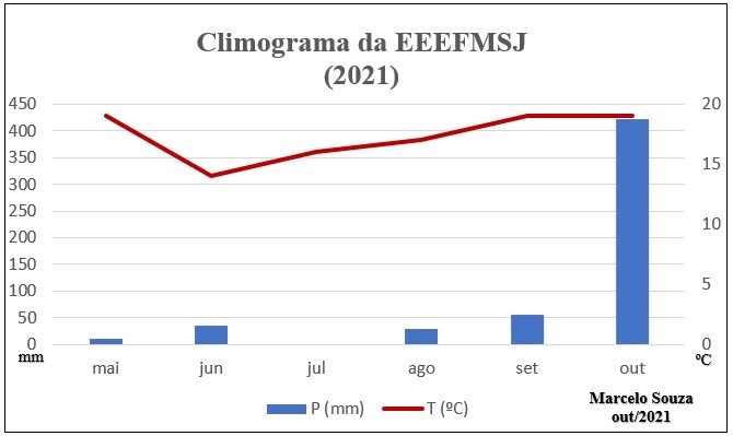 O professor Luiz Henrique Vieira explicou que os valores monitorados entre os meses de maio a outubro de 2021, foram notórios entre as diferenças pluviométricas das localidades, e que a temperatura não tem tanta oscilação. “Esse fato chamou muita atenção de todos, lembrando que vários fatores e condicionantes explicam tal dicotomia como, por exemplo, a altitude e a presença do Parque Nacional do Caparaó, que tem boa parte de seu território dentro do município, estando a Escola São José, nas suas proximidades. Na sede, a estação está a 796 metros de altitude em relação ao nível do mar e, em Pedra Menina, aproximadamente 997 metros”, explicou o professor.