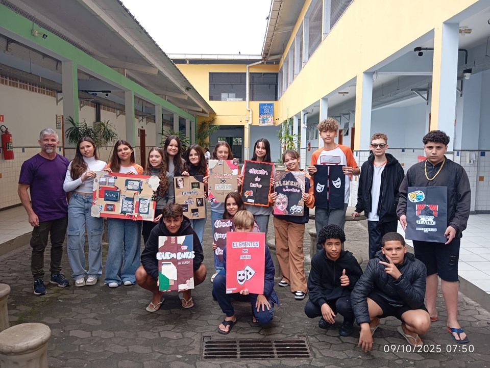 A atividade, voltada aos estudantes do 8º ano do Ensino Fundamental, teve como foco o estudo dos elementos e gêneros teatrais, aproximando o aprendizado teórico da prática artística. Os alunos participaram de todas as etapas, desde a pesquisa e discussão dos temas até a criação e execução dos trabalhos em grupo, o que promoveu um ambiente colaborativo e estimulante.