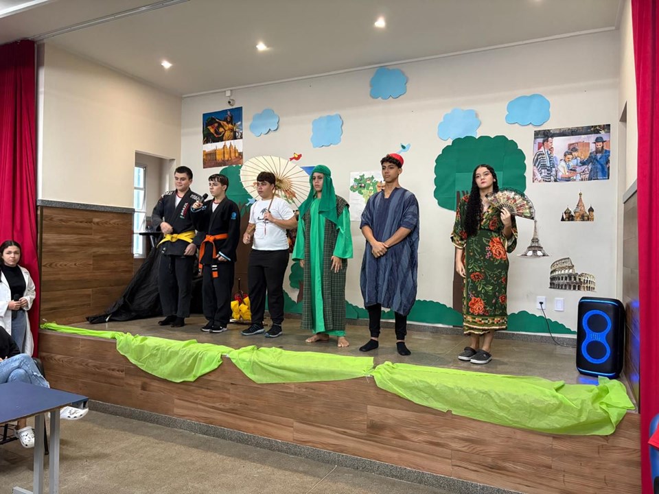 A peça abordou a formação histórica e cultural do Brasil, destacando a contribuição de povos indígenas, africanos, europeus e migrantes, além de provocar reflexão sobre racismo estrutural, identidade e pertencimento. Os estudantes assumiram todas as etapas da produção: pesquisa, elaboração do roteiro, criação de figurinos, montagem do cenário, desenvolvimento das falas e encenação final.