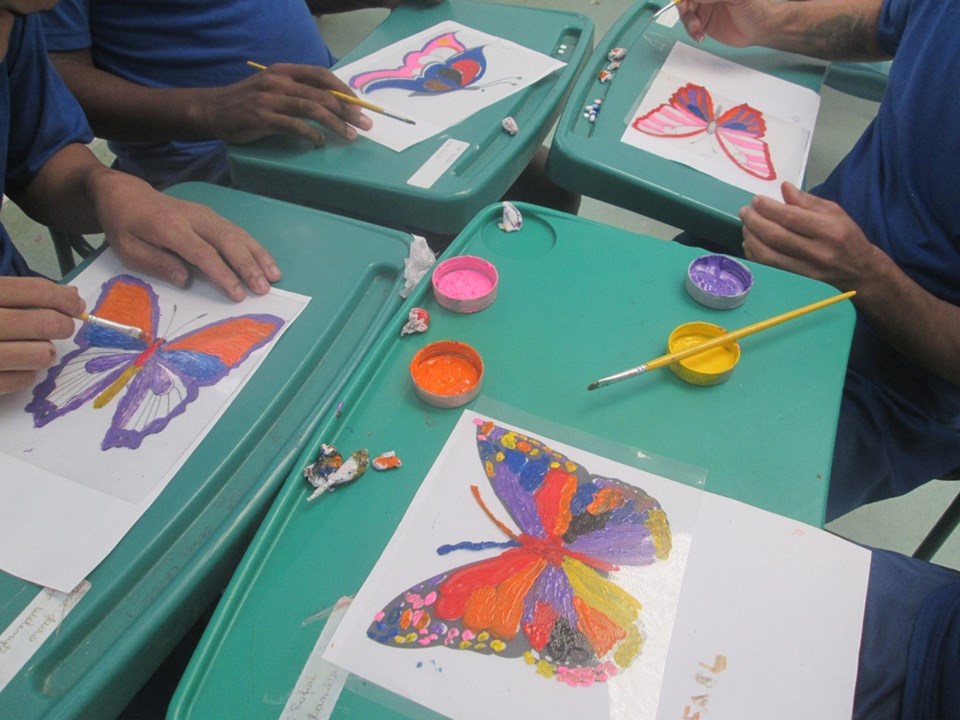 A Escola Estadual de Ensino Fundamental e Médio (EEEFM) Professora Inah Werneck, unidade escolar referência da Penitenciária Regional de Cachoeiro de Itapemirim (PRCI), localizada em Cachoeiro de Itapemirim, realizou com os estudantes da Educação de Jovens e Adultos (EJA) uma releitura do poema “As Borboletas”, de Vinicius de Moraes, por meio de pintura e da produção de um painel para exposição.