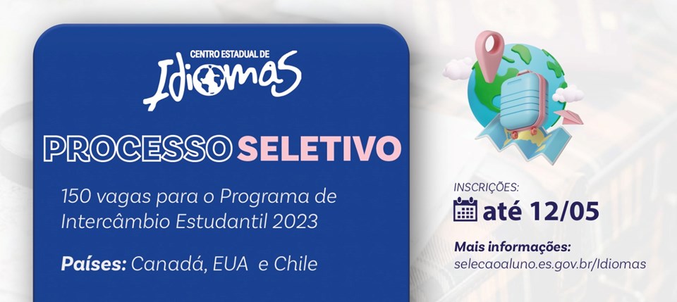 As inscrições estão abertas a partir desta quarta-feira, e devem ser realizadas, exclusivamente pela internet, no endereço eletrônico https://selecaoaluno.es.gov.br/Idiomas/, até o dia 12 de maio de 2023.