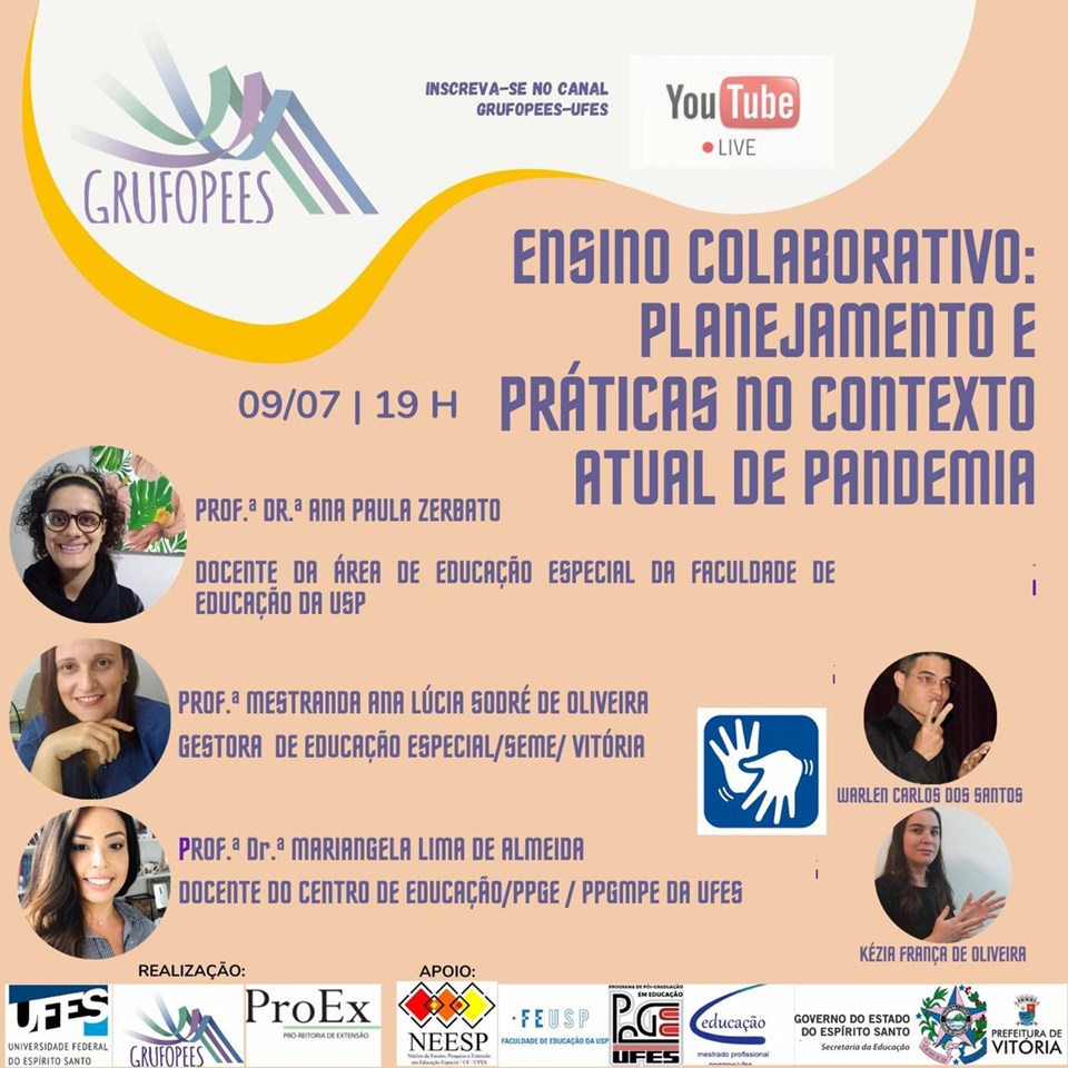 Na próxima quinta-feira (09), será realizado o momento de “Ensino colaborativo: planejamento e práticas no contexto atual de pandemia”, voltado aos professores da Rede Estadual. O evento terá inicio às 19 horas e contará com a participação de professores da Universidade Federal do Espírito Santo (Ufes), da Prefeitura de Vitoria e da Faculdade de Educação da Universidade de São Paulo (USP).