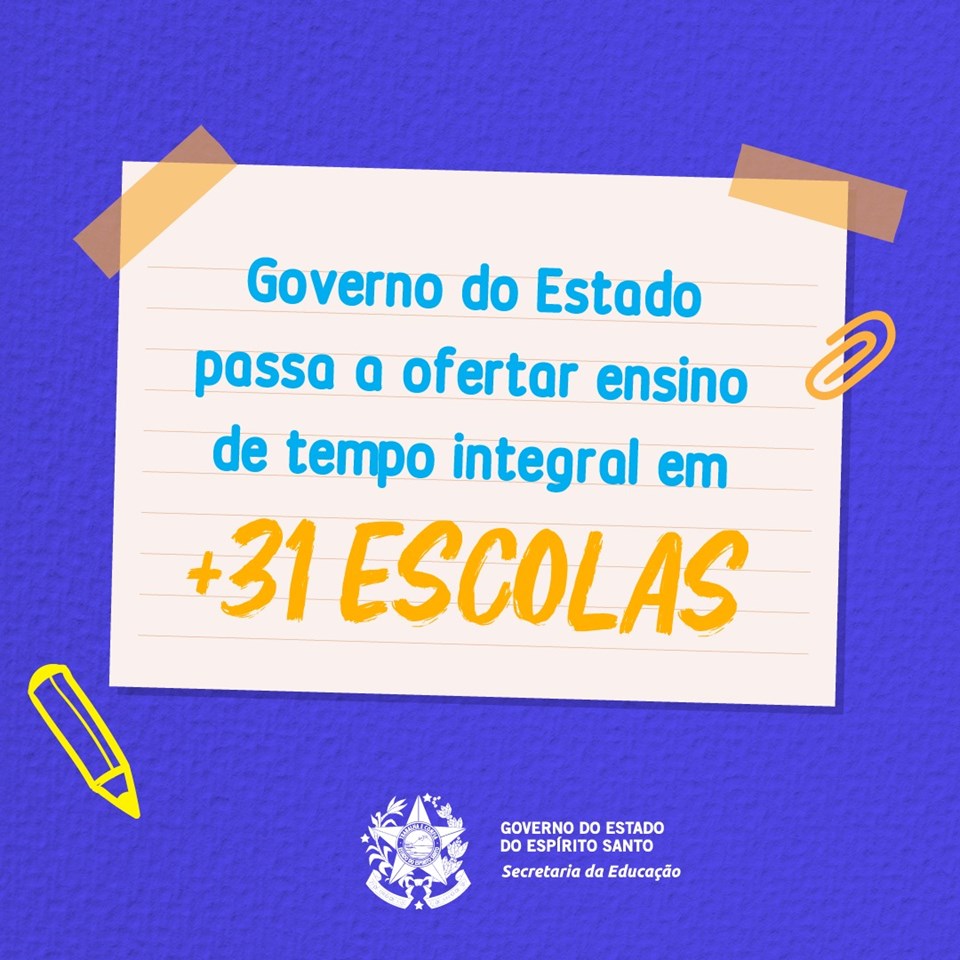 A Secretaria da Educação (Sedu) está ampliando a oferta de ensino em tempo integral para 2021. São 31 novas escolas no próximo ano que passarão a oferecer a Educação em Tempo Integral, totalizando 93 unidades na Rede Estadual. Ao todo, estão disponíveis 9.195 vagas, além das quase 25 mil já disponibilizadas até o ano de 2020. Os estudantes interessados devem ficar atentos às ofertas das escolas e ao cronograma da Chamada Pública Escolar, que segue com o período de rematrícula e transferência interna até o dia 09 de dezembro, pelo site da Sedu –www.sedu.es.gov.br
