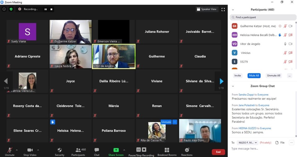 A Secretaria da Educação (Sedu) realizou, na manhã desta sexta-feira (28), uma webconferência com os diretores das escolas da Rede Estadual de Educação, com a pauta concentrada nas questões relativas à expectativa de retorno das aulas presenciais. Mediaram a reunião o secretário de Estado da Educação, Vitor de Angelo; as subsecretárias Isaura Nobre e Andrea Guzzo; e os subsecretários Josivaldo Barreto e Aurélio Ribeiro.