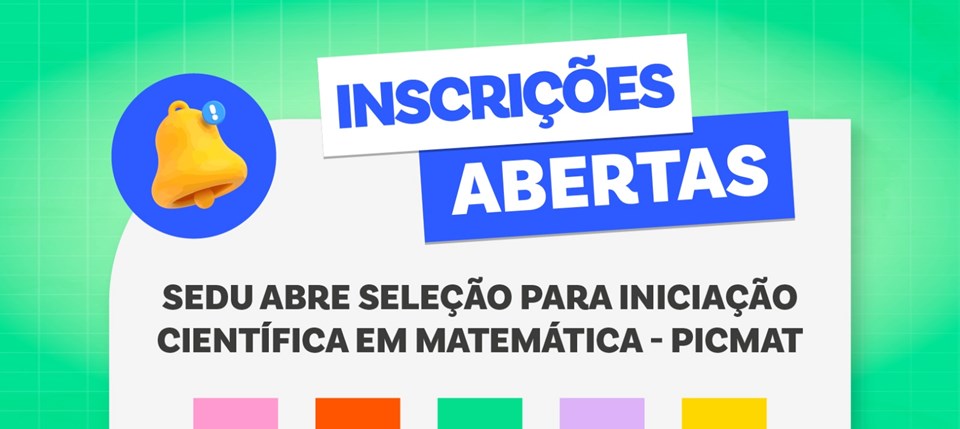 A Secretaria da Educação (Sedu) abriu, nesta terça-feira (14), as inscrições para o Projeto de Iniciação Científica de Matemática (PicMat), do Programa Matemática na Rede. O processo seletivo é destinado a estudantes das Redes Públicas Estadual e Municipais de Ensino do Espírito Santo, devidamente matriculados no Ensino Fundamental Anos Finais e no Ensino Médio. Os interessados devem se inscrever até o dia 30 de abril, por meio do site do Programa Matemática na Rede (clique aqui e acesse).