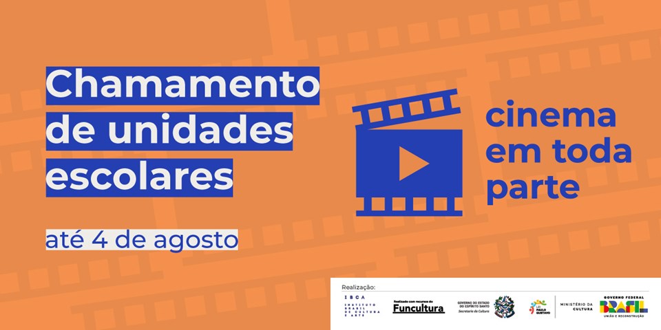 As inscrições para o Chamamento de Unidades Escolares vão até 4 de agosto. As escolas públicas estaduais interessadas em participar do Programa “Cinema em Toda Parte” poderão e inscrever por intermédio do formulário https://forms.gle/tUQsB31e4MAi9duF6.