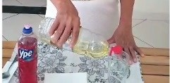 Uma das alunas gravou um vídeo que mostra a interação química entre água, óleo e o detergente.