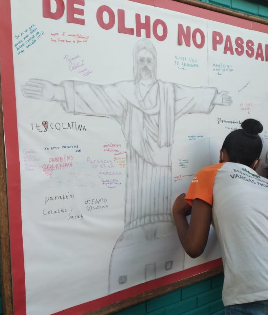 Um painel foi confeccionado de forma colaborativa entre os estudantes com frases, imagens e outros meios didáticos carregados de emoções.