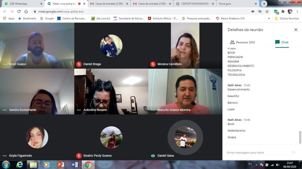 Foram organizados plantões no Google Meet de forma interativa por cada Área de Conhecimento com propostas de jogos, apresentação de práticas experimentais e sorteios. Além disso, durante o plantão da disciplina Projeto de Vida, teve um bate-papo sobre a “Valorização da Vida em Tempos de Pandemia” com o psicólogo Augusto Luiz Almeida Junior. Ele orientou os estudantes, pais e professores sobre a importância de praticar atividades físicas, cuidar da alimentação e manter a rotina de estudos para evitar a ansiedade durante o distanciamento.