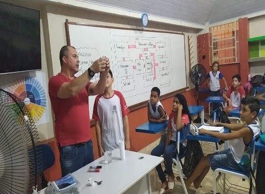 A aula foi ministrada na disciplina Pensamento Científico, com os alunos do 6º ano do Ensino Fundamental.