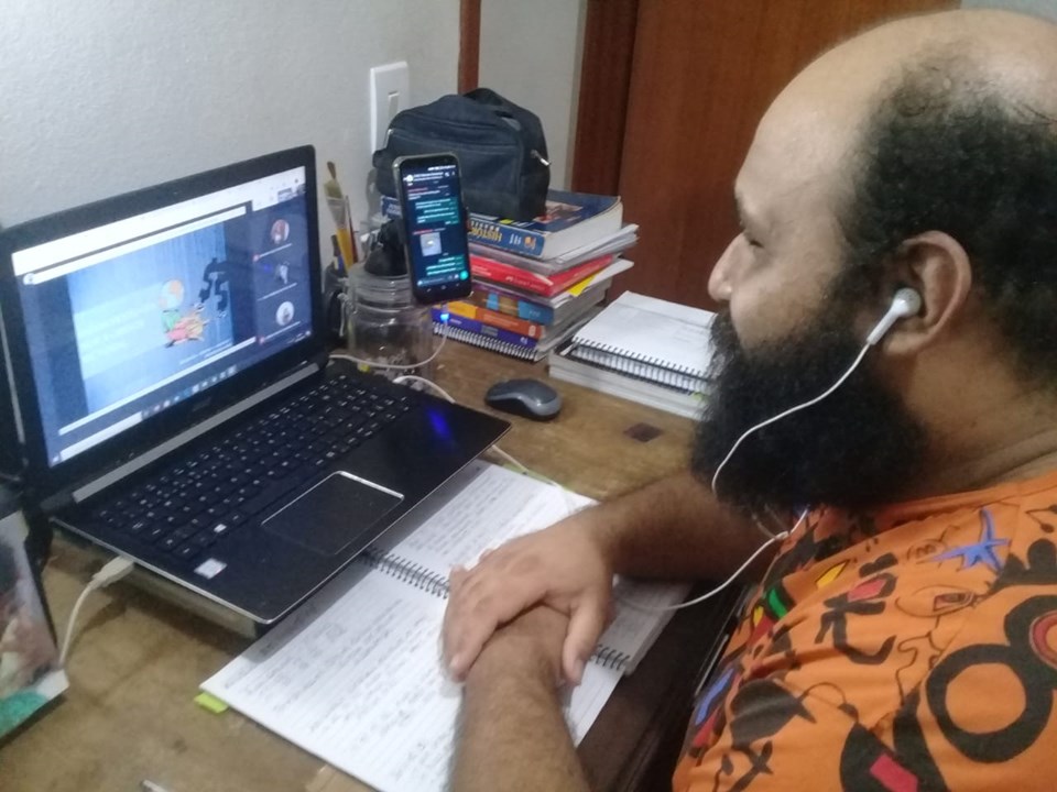 No Centro Estadual de Ensino Fundamental e Médio de Tempo Integral (CEEFMTI) Marita Motta, em São Mateus, uma parceria tem possibilitado a continuidade da aprendizagem. O professor de Geografia da unidade, André Novais, e os alunos da escola, sobretudo os do Ensino Médio, se uniram em diferentes plataformas digitais para garantir o foco nos estudos com a interação virtual.