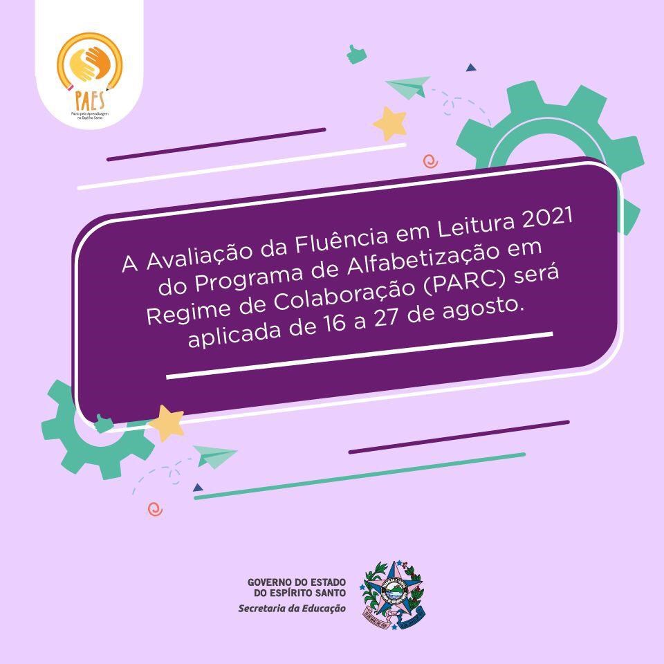 A Avaliação da Fluência em Leitura é uma das ações previstas no Programa de Alfabetização em Regime de Colaboração (PARC) 2021, instituído no Espírito Santo, a partir do Pacto pela Aprendizagem no Espírito Santo (Paes), que é uma iniciativa do Governo do Estado, com o objetivo de fortalecer a aprendizagem das crianças desde a Educação Infantil até as séries finais do Ensino Fundamental, desenvolvida a partir do estabelecimento de um regime de colaboração entre o Estado e as redes municipais de ensino.