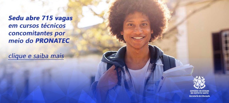 A Secretaria da Educação (Sedu) publicou no Diário Oficial do Espírito Santo, nessa segunda-feira (07), o Edital Nº 11/2021, que autoriza o processo seletivo para estudantes, matriculados na 1ª ou 2ª série do Ensino Médio regular da Rede Pública Estadual, ingressarem em cursos de Educação Profissional Técnica de Nível Médio. São 715 vagas, distribuídas em 19 escolas e municípios, contemplando todas as Regionais da Educação. As inscrições começam nessa segunda-feira (07), a partir das 15 horas, no endereço eletrônico www.selecaoaluno.es.gov.br, no ícone “PRONATEC/CONCOMITANTE”.