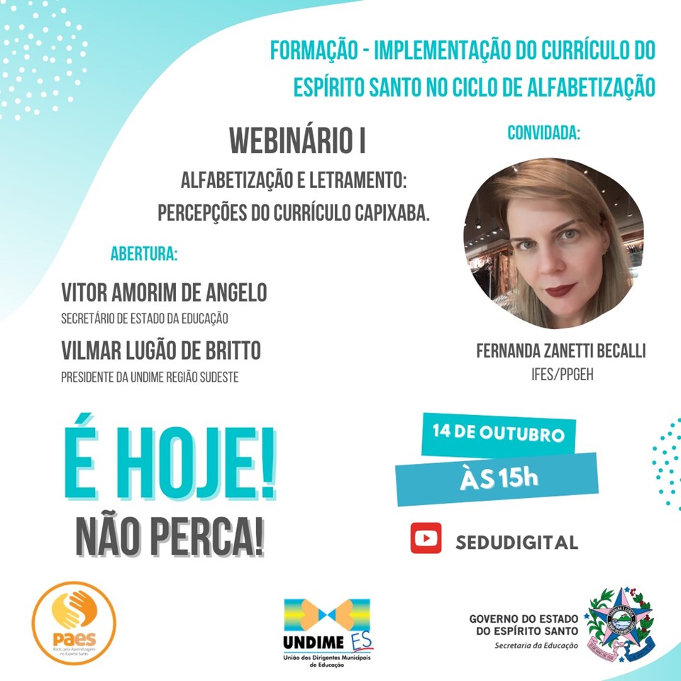 Webinário I – Alfabetização e letramento: percepções do currículo capixaba