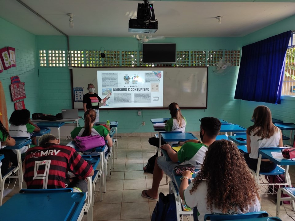 A Escola Estadual de Ensino Fundamental e Médio (EEEFM) Sebastiana Grilo, em Pancas, tem realizado atividades interdisciplinares com os estudantes a cada trimestre. Em uma das ações, foi desenvolvido o tema Consumo/Consumismo, em que a professora da disciplina de Geografia do Ensino Médio, Leonilda Graunke, proporcionou uma aula expositiva sobre o assunto, visando a dialogar e conscientizar sobre atitudes e comportamentos que poderão resultar na preservação do meio ambiente de forma mais eficaz.