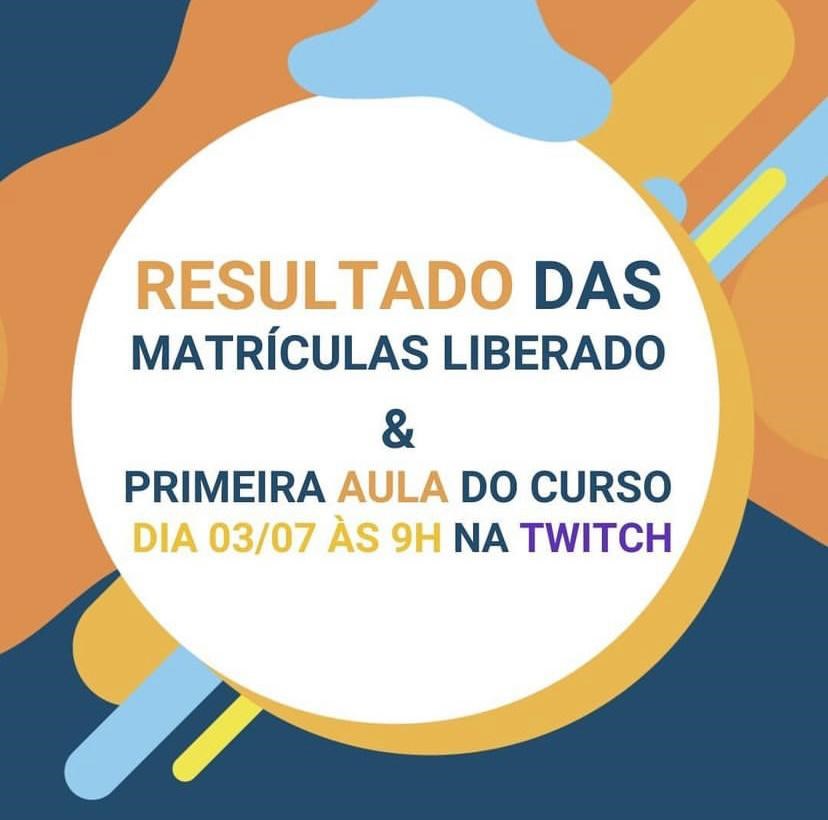 Neste sábado (03), será realizada a primeira aula do curso, às 9 horas, na Twitch: https://www.twitch.tv/introcomp.