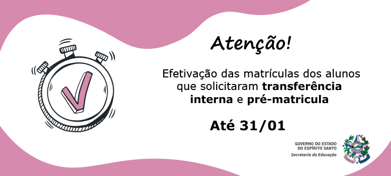 Os alunos que participaram da Chamada Pública Escolar 2020 (transferência interna e pré-matrícula) têm até o dia 31 de janeiro para efetivar a matrícula garantindo, assim, a vaga na unidade escolar. Para efetivar a matrícula, é necessário ir até a escola onde o estudante foi localizado, levando os seguintes documentos: