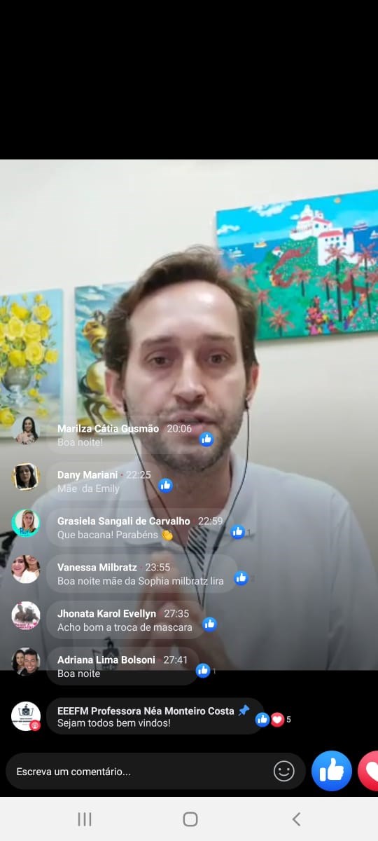 A Escola Estadual de Ensino Fundamental e Médio (EEEFM) Professora Néa Monteiro Costa, de Colatina, realizou sua primeira “Reunião Virtual de Pais”, nessa quarta-feira (28). Com a pandemia do novo Coronavírus (Covid-19), as tradicionais reuniões de pais foram suspensas e a escola se adaptou ao atual momento, organizando uma reunião em formato de live, em que foram tratados os principais assuntos do momento, vividos pela comunidade escolar como o retorno das aulas presenciais, os protocolos de segurança sanitária, a sistemática de finalização do ano letivo, a adequação curricular para o ano de 2020/2021 e as informações sobre o processo de rematrícula e matrícula nova.