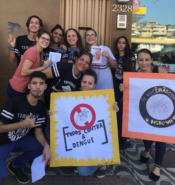 Na última semana, acompanhados de responsáveis, os alunos participaram de uma campanha de conscientização nas ruas próximas à escola. A ideia da atividade foi sensibilizar a comunidade sobre a luta diária contra o mosquito e o risco de se deixar água parada.