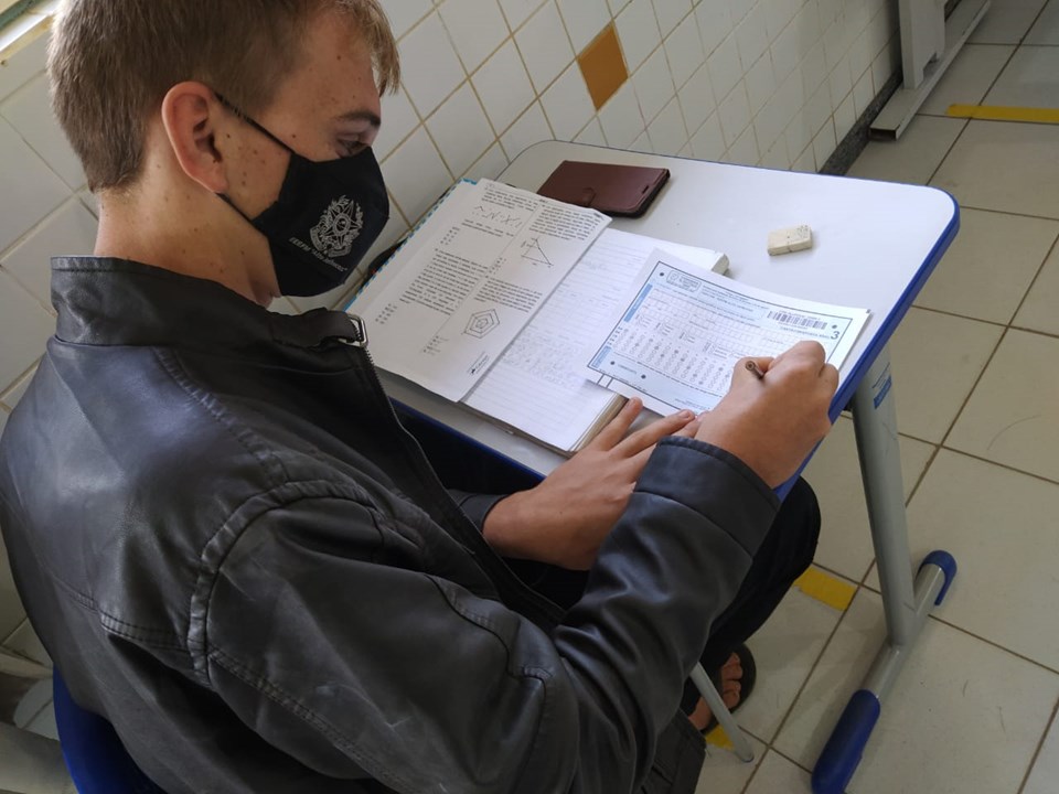 Este ano, em vez de receberem uma prova impressa, os alunos puderam realizar no modelo híbrido. Os alunos que têm smartphones fizeram em seu próprio aparelho, enquanto os alunos que não tinham nenhum dispositivo, realizaram no formato impresso.