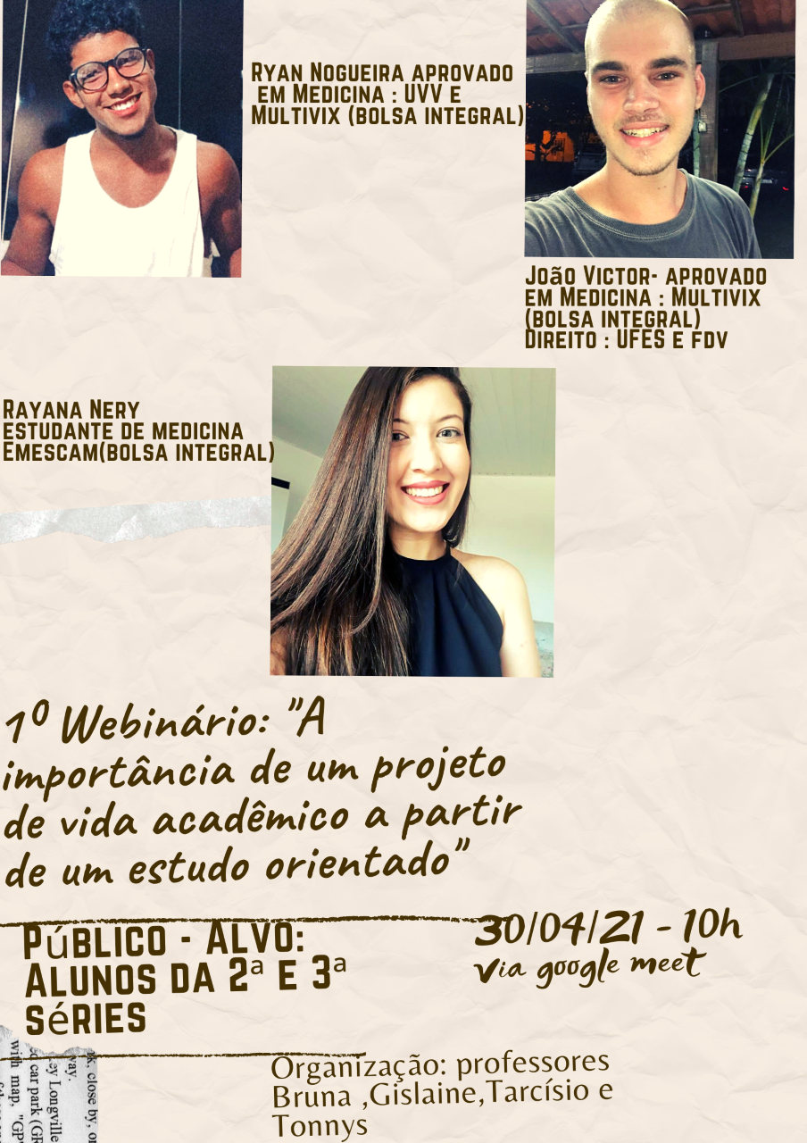 Para isso, o professor responsável pelo webinário, Tarcísio Leite, convidou ex-alunos aprovados no curso de Medicina, com bolsa integral, e que estudaram em escolas públicas.