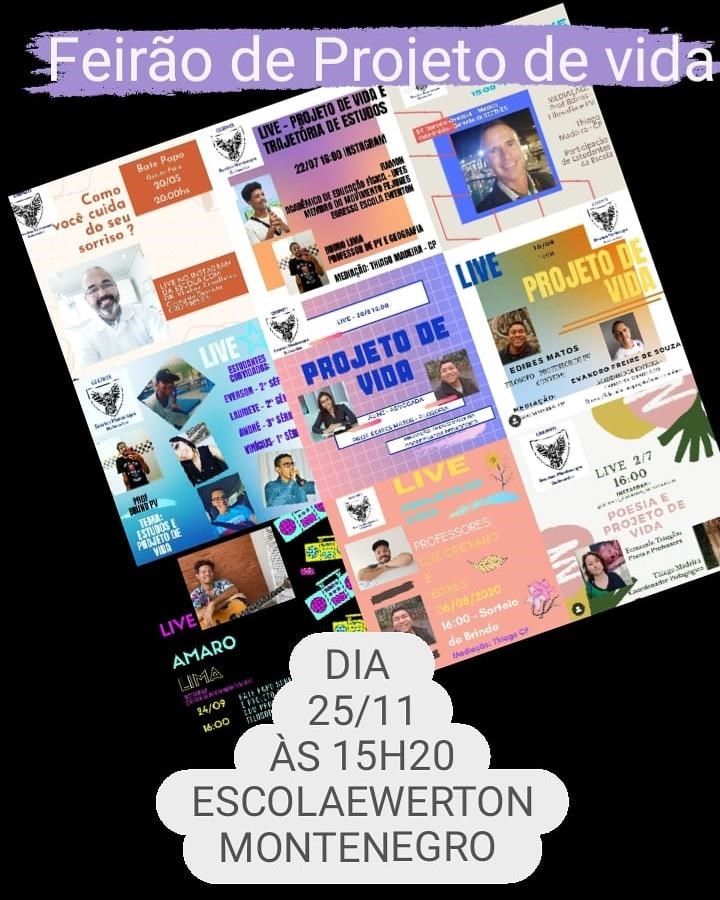 No evento, realizado no último dia 25 de novembro, no modo on-line, por meio da plataforma Google Meet, estiveram presentes: o músico Amaro Lima; o fotógrafo Gabriel Lordello; a poeta Fernanda Tatagiba; o veterinário Marcelo Vivacqua; o professor do Projeto de Vida Benedito de Castro; a advogada Aline Torres; e o cirurgião dentista Vladmir Cavalheiro, que contribuíram, no decorrer desse ano, com lives realizadas pela escola.