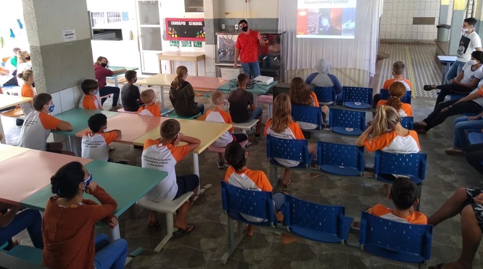 A palestra foi ministrada por biólogos da Secretaria de Meio Ambiente do Município de Afonso Cláudio e teve como objetivo sensibilizar os estudantes sobre os cuidados com o meio ambiente, levando-os a reflexões sobre os impactos da não preservação num futuro próximo.