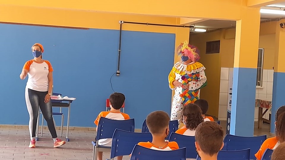 Com o apoio do professor de Educação Física Gabriel Carlini e da professora de Arte Rafaela Torezani, os alunos puderam aprender de forma bem-humorada sobre os protocolos de higiene e segurança contra a Covid-19, que deverão ser cumpridos na escola durante o ano letivo.