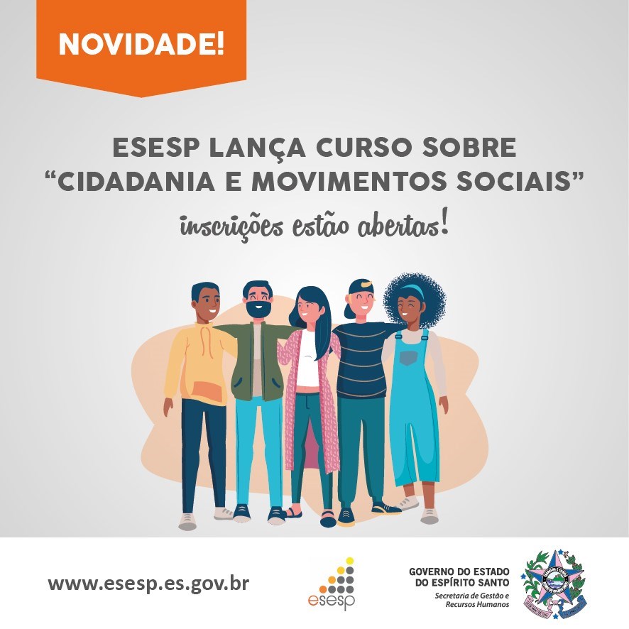 Os servidores estaduais e municipais já podem contar com uma nova formação ofertada pela Escola de Serviço Público do Espírito Santo (Esesp). Para o mês de julho, a instituição abriu pela primeira vez uma turma do curso “Cidadania e Movimentos Sociais”, programado para ocorrer entre os dias 22 e 26 de julho.