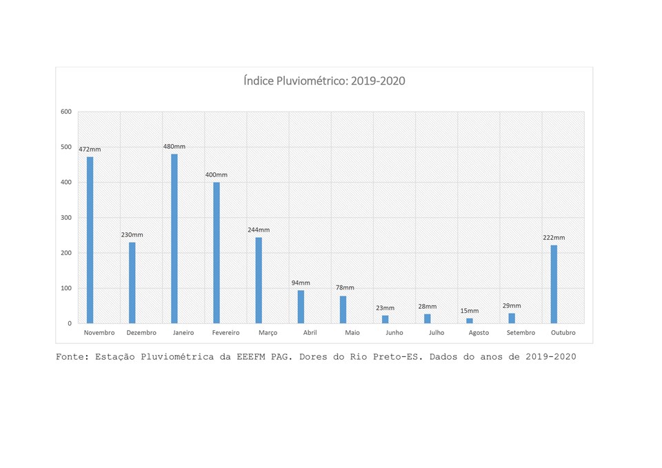 A Escola Estadual de Ensino Fundamental e Médio (EEEFM) Pedro de Alcântara Galvêas, localizada em Dores do Rio Preto, adquiriu um pluviômetro com intuito de contribuir com as aulas de Geografia e demais disciplinas de contato. O instrumento é usado para medir a quantidade de precipitação diária que ocorre. A quantidade de chuva é medida na unidade matemática de milímetros (mm). O pluviômetro foi instalado em um lugar alto e aberto da escola, amarrado em uma estrutura de bambu, possibilitando, então, armazenar a água da chuva.