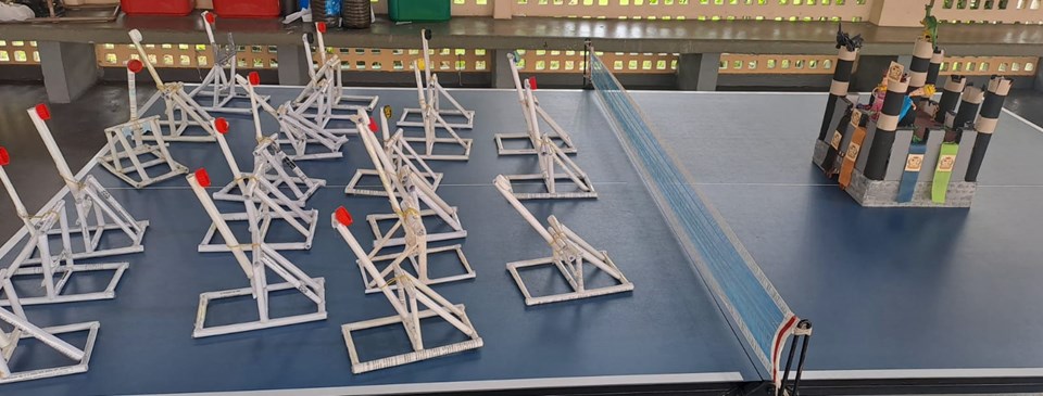 Estudantes da Escola Luiz Manoel Vellozo aprendem física construindo catapultas com materiais reciclados