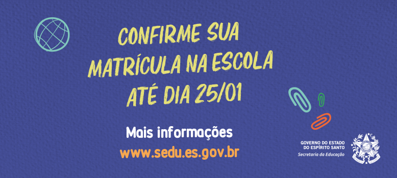 Os estudantes que participaram da Chamada Pública Escolar 2021, nas etapas de Rematrícula, Transferência Interna e Pré-Matrícula, precisam efetivar a matrícula na escola onde conseguiram a vaga até esta segunda-feira (25). A última etapa, que acontecerá a partir desta terça-feira (26) a 12 de fevereiro, será a chamada dos alunos constantes na lista de suplência em escolas que apresentarem séries/anos com vagas, após o período de confirmação de matrícula.