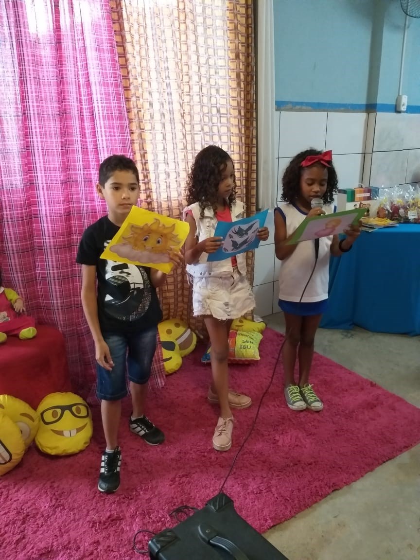 Já o “Sarau Literário”, foi realizado pela professora Vanessa Simonassi com os alunos do Ensino Fundamental. O evento contou com declamação de poemas e poesias; jogral; recital de parlendas e quadrinhas; apresentação da música “Aquarela”, baseada no livro Ciranda das Cores e apresentação da peça teatral, "A Margarida Friorenta"; além de uma entrevista cantada.