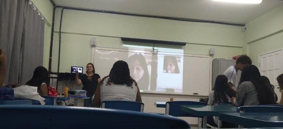 A atividade de conversação com estrangeiros foi realizada entre 28 de outubro e 6 de novembro com 11 turmas da escola. “A infraestrutura que a escola já dispõe, como internet wi-fi, projetor e caixa de som, ajudaram muito para a realização dessa ação”, disse Rita.