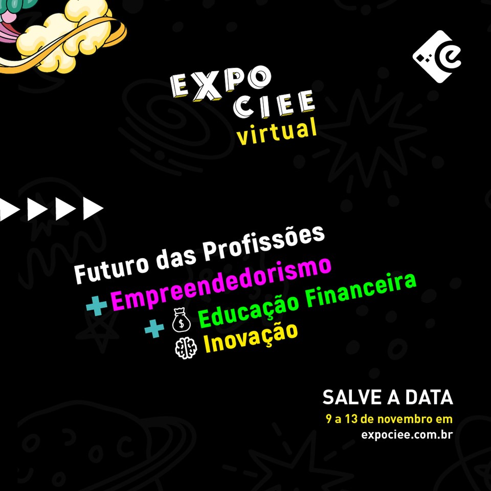 O Centro de Integração Empresa-Escola (CIEE) realizará de 09 a 13 de novembro de 2020, a Expo CIEE de forma 100% on-line. Serão cinco dias de evento 24 horas por dia, com diversão, games, vagas de estágio e jovem aprendiz, palestras e muito mais. As inscrições iniciam no próximo dia 26, por meio do link: https://www.expociee.com.br/virtual.