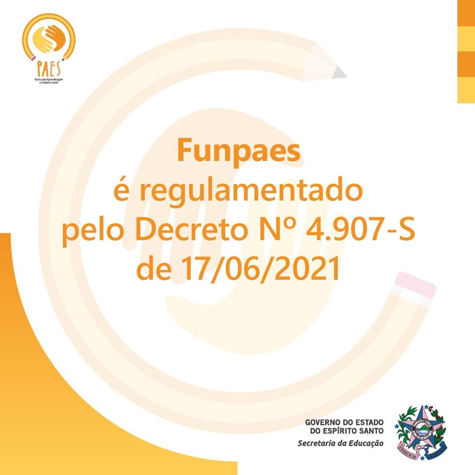 O Governo do Estado, por meio da Secretaria da Educação (Sedu), publicou no Diário Oficial do Estado, desta quinta-feira (17), o Decreto Nº 4.907-S, que regulamenta o Fundo Estadual de Apoio à Ampliação e Melhoria das Condições de Oferta da Educação Infantil e do Ensino Fundamental no Espírito Santo (Funpaes).