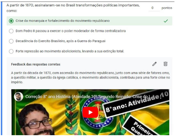 O professor Lucas da Silva Machado criou um feedback de correção para os alunos no próprio formulário, por meio de pequenas gravações.