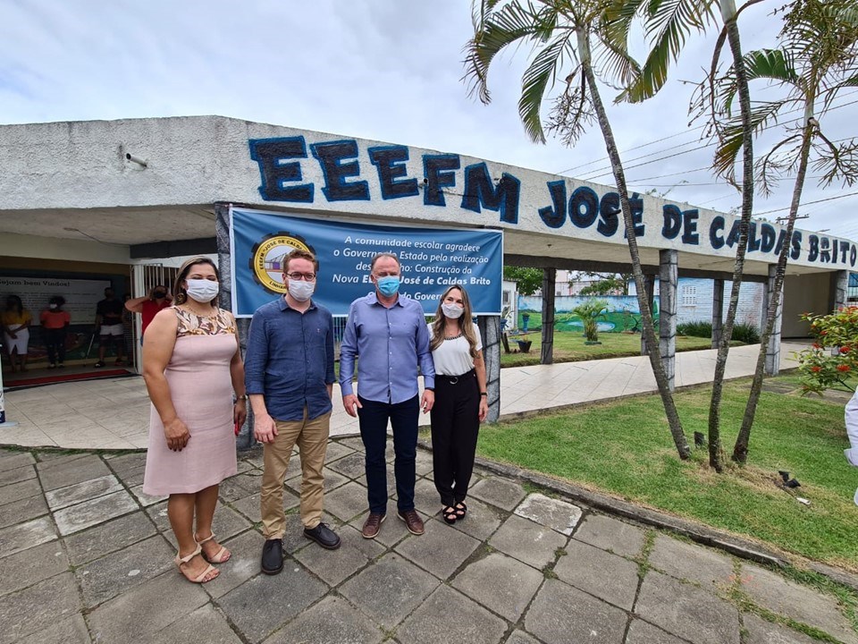 O governador também esteve na escola José Caldas Brito, no bairro Araçá, onde anunciou a reconstrução da unidade de ensino. A nova estrutura terá biblioteca, quadra poliesportiva, auditório, dois laboratórios de Informática, duas salas multiuso, laboratório de Química/Biologia, laboratório Física/Matemática, 16 salas de aula, sala de recurso, pátio coberto, sala de artes, ambiente administrativo e refeitório. A área total da obra será de 5.261,17 metros quadrados, com investimento de R$ 16,5 milhões. O prazo de execução das intervenções é de 720 dias.