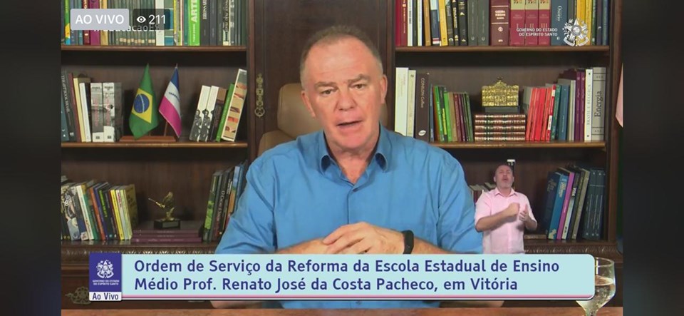 O Governo do Estado, por meio da Secretaria da Educação (Sedu), autorizou o repasse de R$ 845.232,55 para as obras de reformas da Escola Estadual de Ensino Médio (EEEM) Professor Renato José da Costa Pacheco, localizada no bairro Jardim Camburi, em Vitória. A cerimônia virtual, transmitida ao vivo pelas redes sociais, foi realizada na tarde desta quarta-feira (10), com a participação do governador Renato Casagrande.