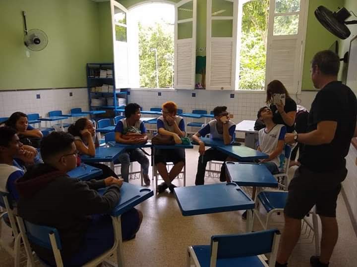 Uma vez por semana, sempre no horário do intervalo, os alunos participam de aulas de conversação.