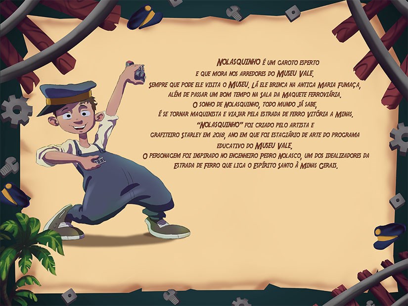 Crianças e jovens poderão conhecer dois personagens que representam um pouco do espírito ferroviário, Nolasquinho e o maquinista Alcides. Juntos, eles irão levar os participantes através de atividades lúdicas pelos caminhos da história da Estrada de Ferro Vitória a Minas.