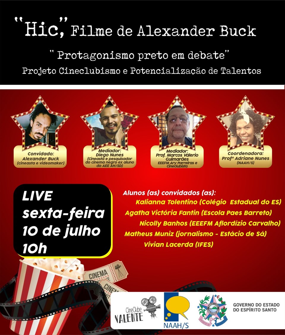 “O filme ‘Hic’ foi disponibilizado na Videoteca Cine Valente - Informativo semanal de Cinema NAAH/S, e será o gatilho para o debate sobre racismo”, disse Adriane Nunes, coordenadora do projeto Cineclubismo e Potencialização de Talentos do Núcleo.